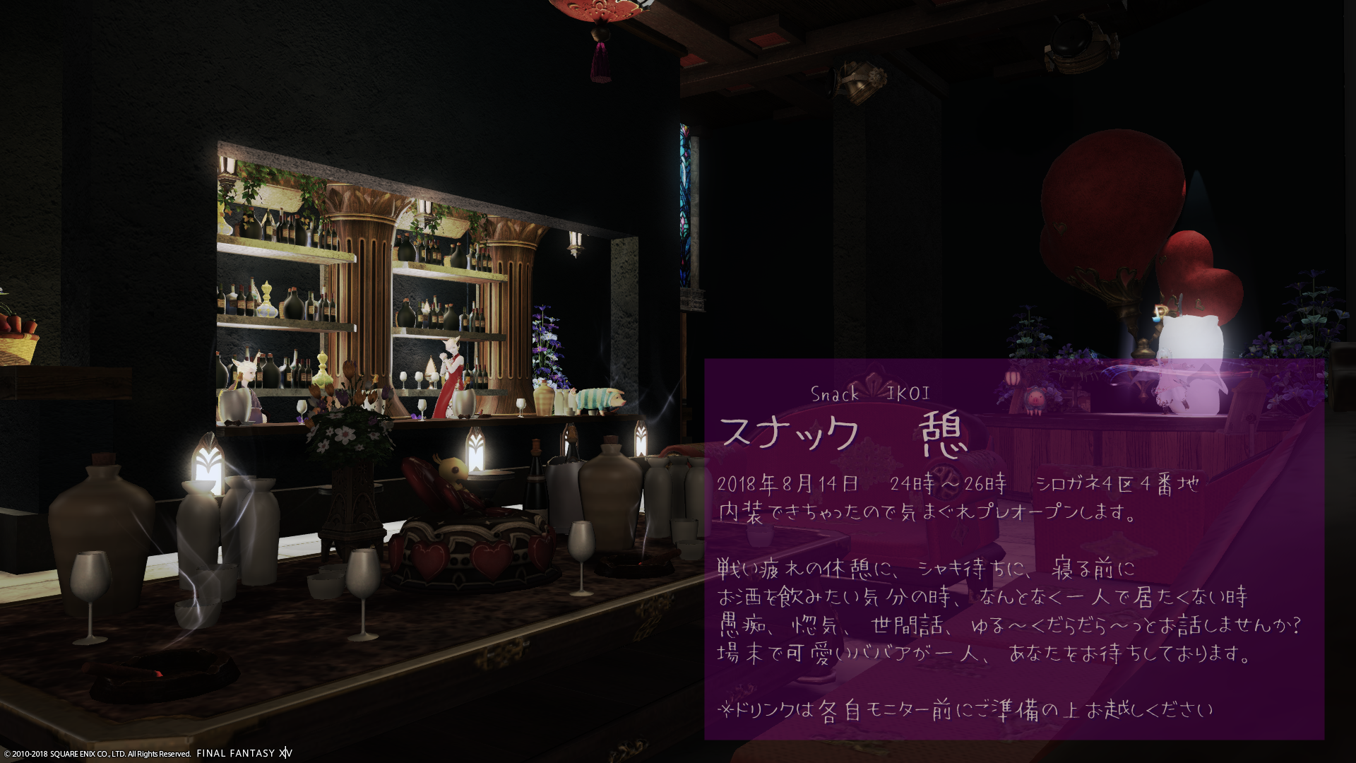 夏ごろに一度プレオープンしたスナック -憩- を通常OPENさせます。